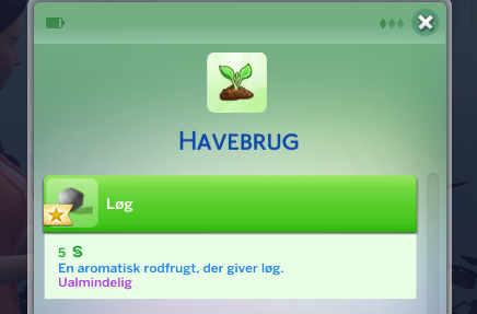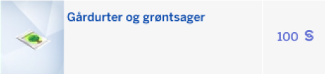 - Supersalg; Kræver niveau 8 i Havebrug. Din simmer kan se alle planter der kan sælge og prisen.