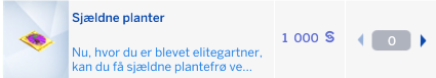Når din simmer endelig får niveau 10, kan din simmer købe "Sjælden planter", for 1000§ simoleoner;