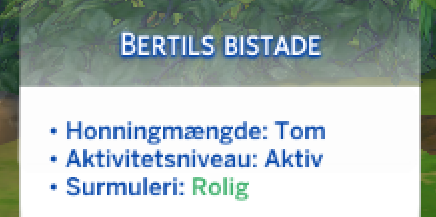 Dette er et nyt ineraktions genstand, som dine simmer kan købe for 265 simoleoner. Når pile står over den, kan din simmer se infomation om bierne.