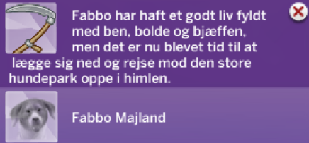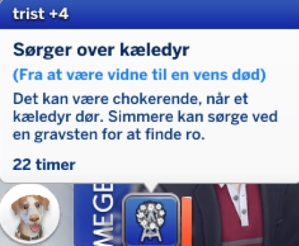 Det er altid trist at sige farvel til et kæledyr, så din simmer vil få en negativ Humørstump, som vil vare i 22 simmer timer!
