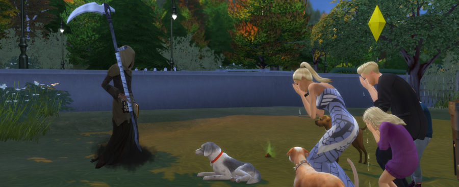 Kæledyr som er gået bort, vil på et tidspunkt vende tilbage som et spøgelse. Din simmer har stadigvæk de samme sociale interaktioner som før og kan endda få dem tilbage i deres husholdning igen.
