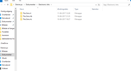 - Gå ind i Dokumenter/Electronic arts/The sims 4 , på din nye computer. Her skal du så omdøbe The sims 4 mappen til hvad som helst, f.eks. til The sims 4c