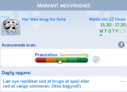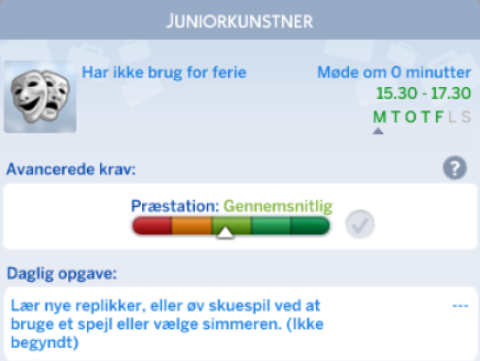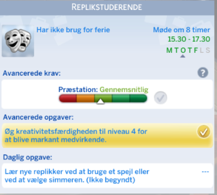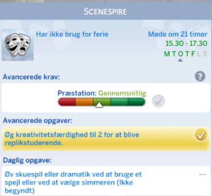 Din simmer har valgt at blive medlem af dramaklubben. Din simmer holder møder fra 15:30 - 17:30 i alle hverdag, hvor lørdag og søndag har de fri.