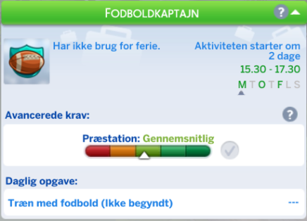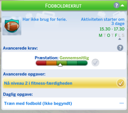 Kom med på fodboldtholdet, og ør dit fitnessniveau! Din simmer kan træne boldafleveringer og fremvis dine evner under idrætsdagen.