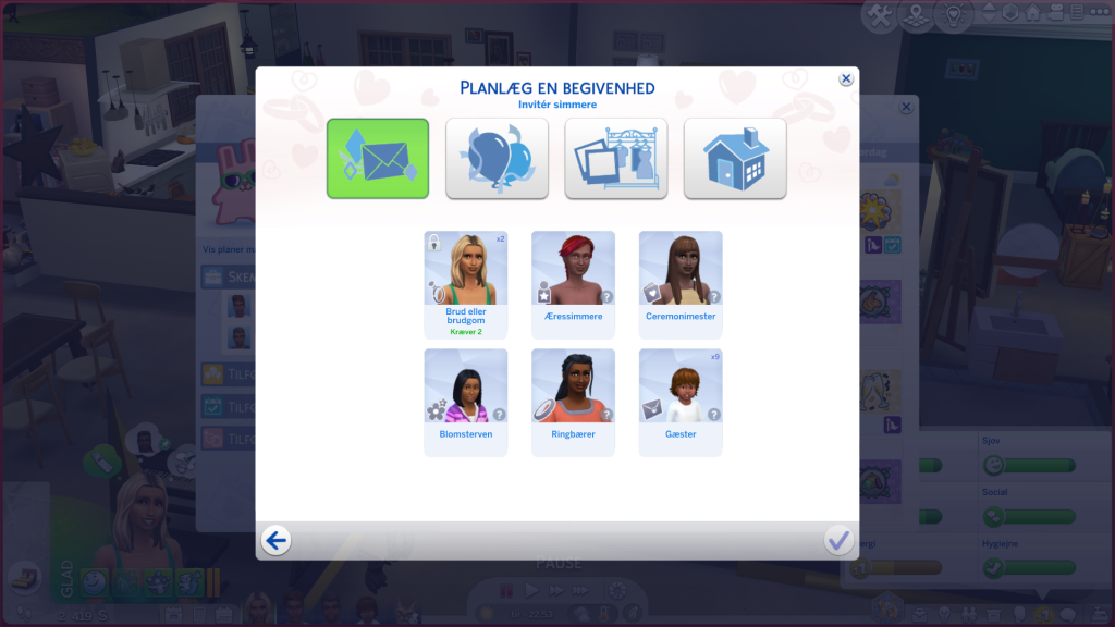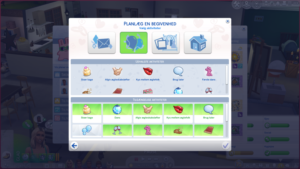 Når dine forberedelser er færdige og dine gæster er kommet, skal din simmer udføre de aktiviteter de har valgt!