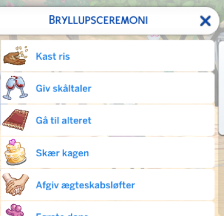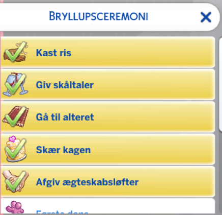 Undervejs i hele bryllupsceremonien, vil de opnår nogle forskellige humørstumper. Her kan du se hvilken nogle der er;