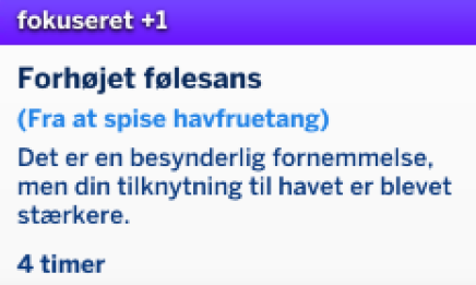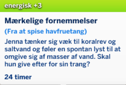 Når de spiser bare én havfruetang, vil de modtage en Humørstump;- " ". Denne vil vare i 4 timer. Når din simmer har denne, og de igen spiser havfruetang, vil de med det samme blive til en simmer igen.