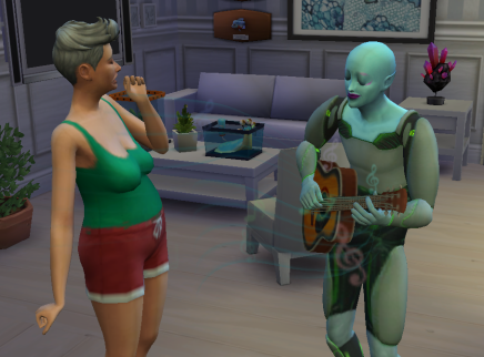 Niveau 2; Din simmer kan nu slå på strengene for sjov, når din simmer er Legesyg, og researche guitarspil på en computer. Din simmer kan nu også nyde Blues på musikanlægget og tale begejstret om guitarsoloer med andre simmere.