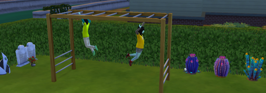 Niveau 7; Din simmer får nu bedre humørstumper fra at lege i klatrastativet.