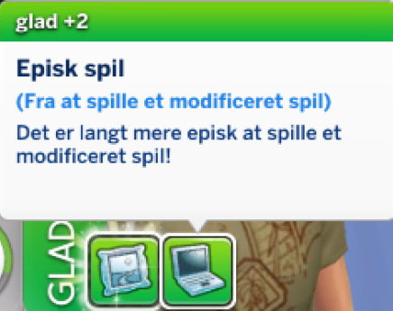 Din simmer kan også modificére et computerspil. Når din simmer har gjordt dette, og spiller på detmodificéret spil, får de denne Humør stump.