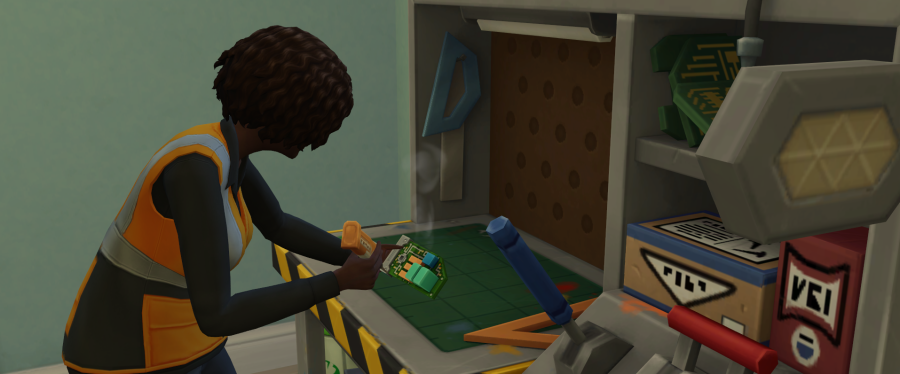 Niveau 1; Din simmer har lige fået en færdighed i robotteknologi og kan nu lave de mest utrolige robotter, der får andre simmere til at falde i svime over hendes/ hans geniale opfinderevner! Din simmer kan købe reservedele til robotteknologi til sine kreationer fra computeren eller finde delene i elektronikaffald.