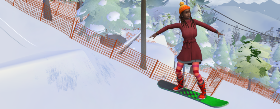 Niveau 1; Din simmer har fundet en ny hobby - snowboarding! Din simmer kan bruge de nemme baner og begynderbanerne med alle intensiteter. Bliv ved med at opbygge denne færdighed for at låse op for flere baner samt evnen til at lave smarte tricks og låse op for nyt udstyr.