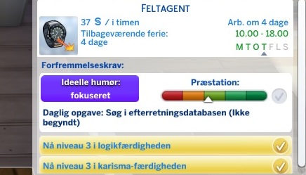 Din simmer får mulighed for at vælge retning inden for Hemmelig agent karrieren. Dette sker når din simmer når til niveau 8.