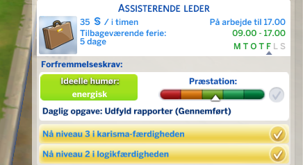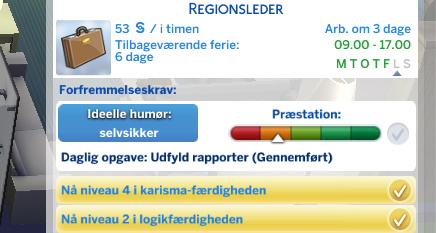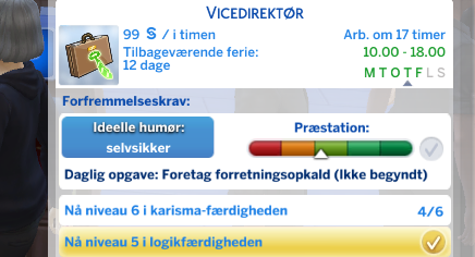 Din simmer får muligheden for at vælge retning inden for Forretnings karriere. Dette sker når din simmer kommer til niveau 7.