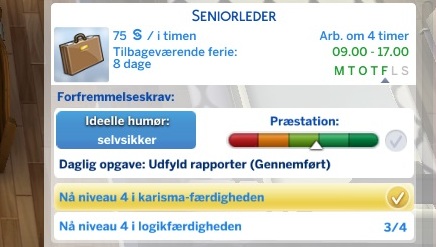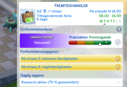 Din simmer får muligheden for at vælge retning inden for Forretnings karrieren. Dette sker når din simmer kommer til niveau 7.
