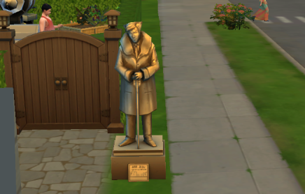 Din simmer kan klikke på statuen, " Se legesygt på statue ", derved får din simmer et Legesyg Humørstump.