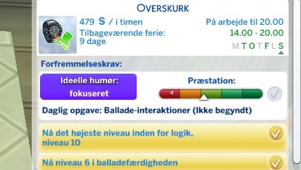 Selvom at din simmer har nået toppen af sin karriere, betyder det ikke at de kan slappe af endnu. Din simmer skal stadigvæk møde til tiden og gøre en god præstation på jobbet, ellers kan din simmer blive degraderet og miste alt sit hårde arbejde.