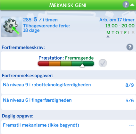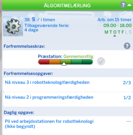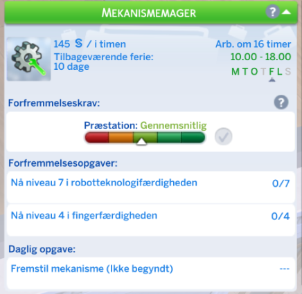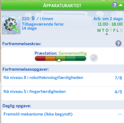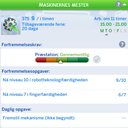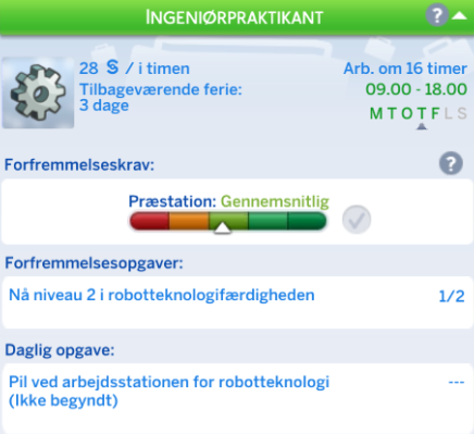 Din simmer har mulighed for at vælge retning inden for Ingeniør karrieren. Dette sker når din simmer kommer til niveau 7.