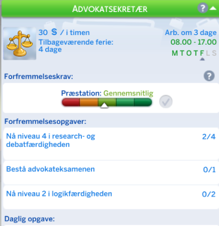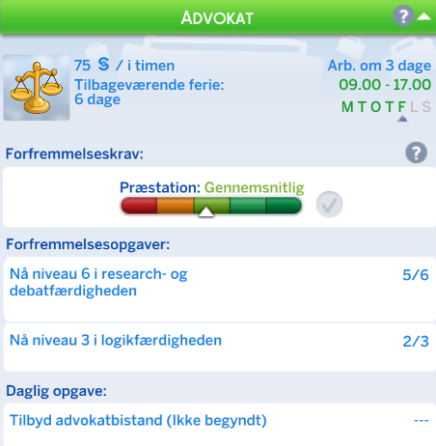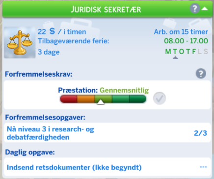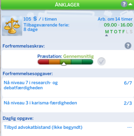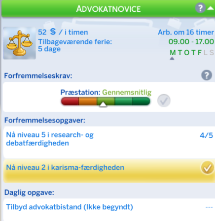 Din simmer har mulighed for at vælge retning inden for Jura karrieren. Dette sker når din simmer kommer til niveau 8.