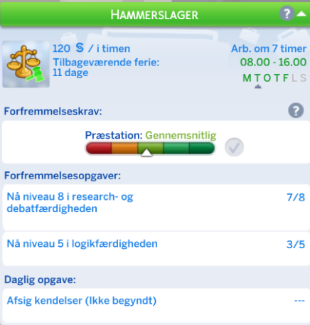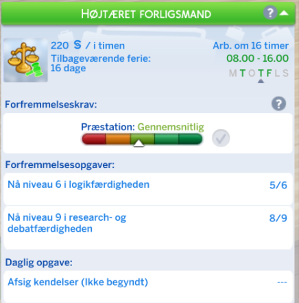 Selvom at din simmer har nået toppen af sin karriere, betyder det ikke at hun/han kan slappe af endnu. Din simmer skal stadigvæk møde til tiden og gøre en god præstation på jobbet, ellers kan din simmer risikere at blive degraderet og miste alt sit hårde arbejde.