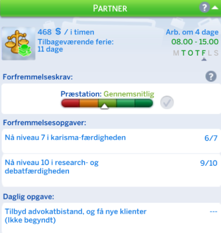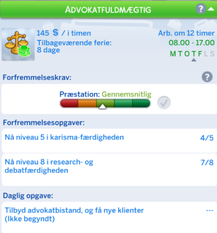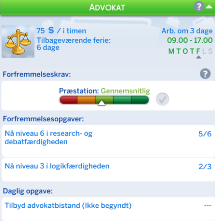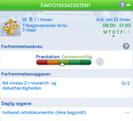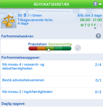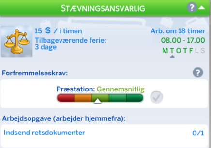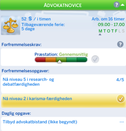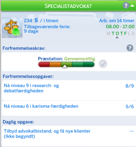 Din simmer får mulighed for at vælge retning inden for Jura karrieren. Dette sker når din simmer kommer til niveau 8.