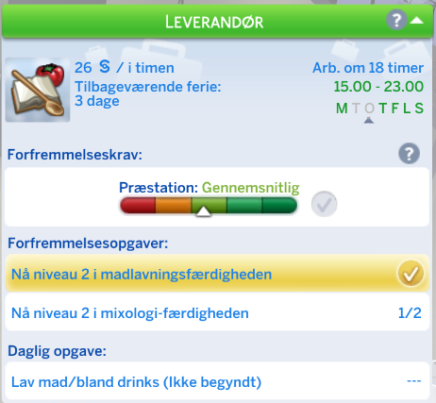 Din simmer får mulighed for at vælge retning inden for Kulenarisk karrieren. dette sker når din simmer kommer til niveau 7.