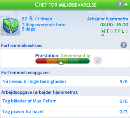 Din simmer for mulighed for at vælge retning inden for Miljøforkæmper. Dette sker når din simmer når niveau 7.