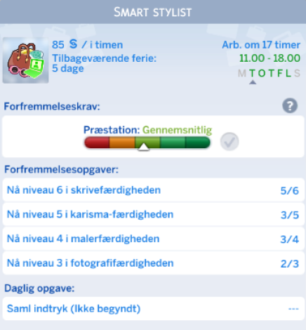 # Der er nogle fejl med dette job, der er lidt kludre i færdigheds niveauerne, skyldes nok den nye udvidelsespakke; - Bliv berømt.