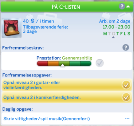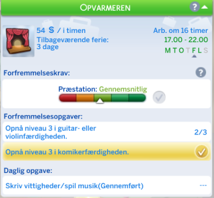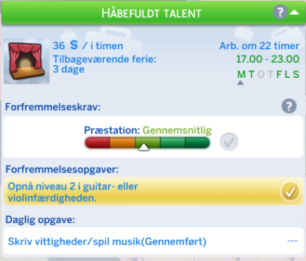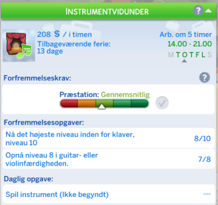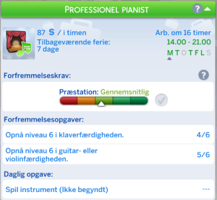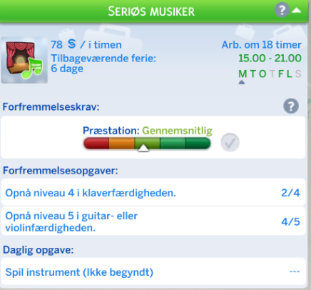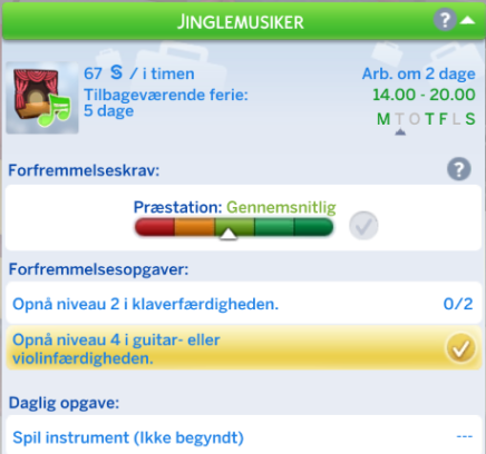 Din simmer får mulighed for at vælge retning inden for Musik karrieren. Dette sker når din simmer kommer til niveau 4.