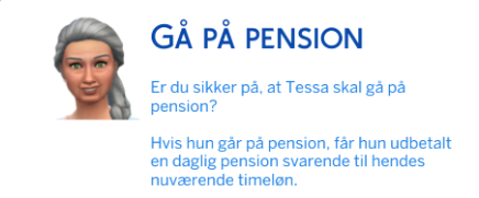 Du kan ogsp vælge at: Gå på oensin fra Byplanlægger, og modtage en pensionudbetaling hver dag, som er baseret på hendes/hans seneste løn.