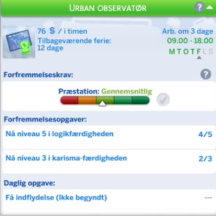 Din simmer har nået toppen af sin karriere, betyder det ikke at hun/han kan slappe af endnu. Din simmer skal stadigvæk møde til tiden og gøre en god præstation på jobbet, ellers kan din simmer risikere at blive degraderet og miste alt sit hårde arbejde.