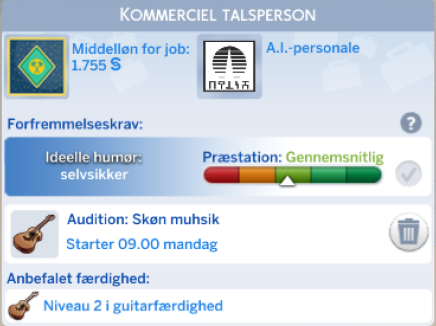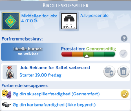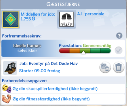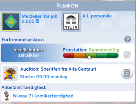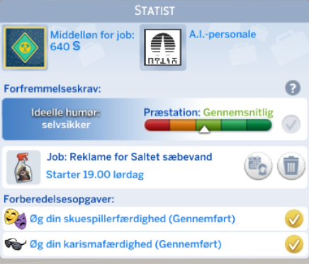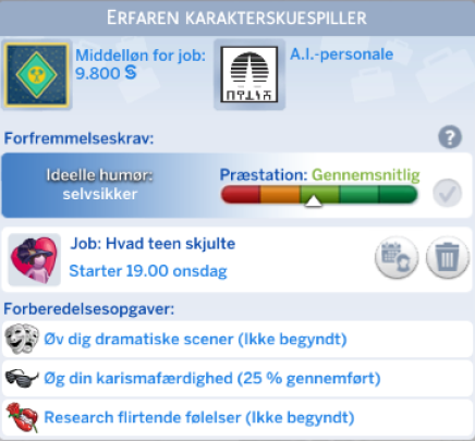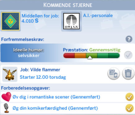 Skuespiller karrieren åbner op for nye interaktioner og nye genstanden til din simmer.