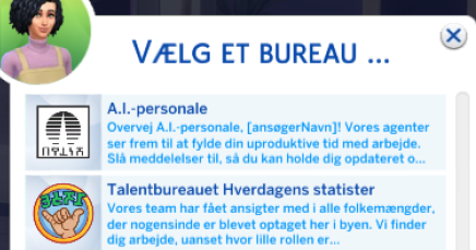 Før du kan komme helt i gang med Skuespiller karrieren, skal din simmer vælge imellem 2 forskellige bereau til din simmer.