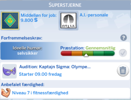Vælg derefter hvilken audition din simmer skal tage, vælg hels dem din simmer har det samme niveau i, i den færdighed auditionen kræver.