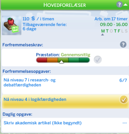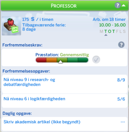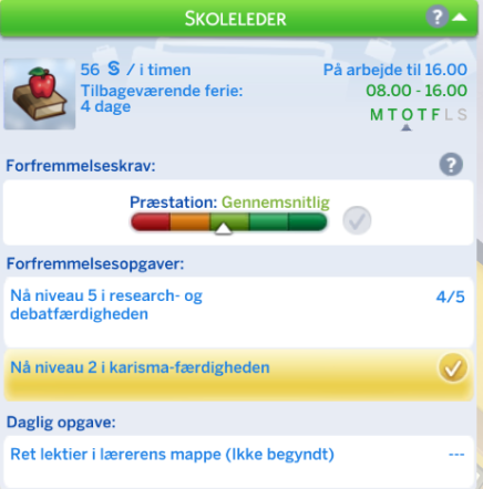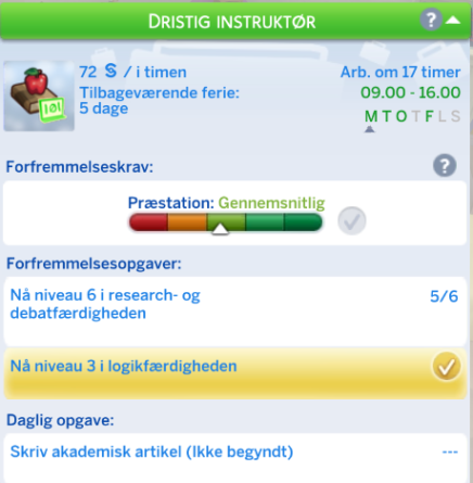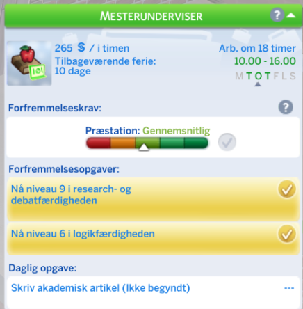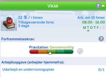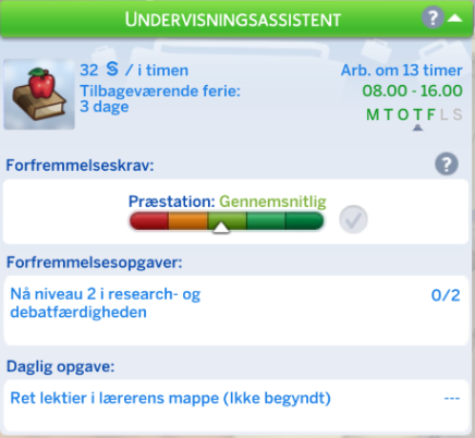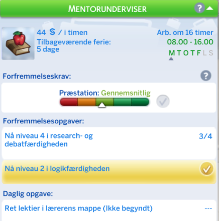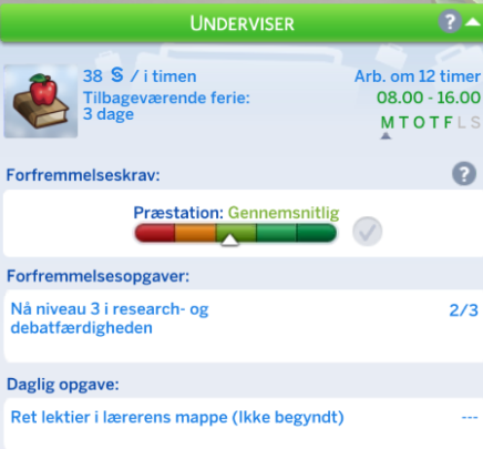 Din simmer har mulighed for at vælge retning inden for Undervisning karrieren. Dette sker når din simmer kommer til niveau 6.