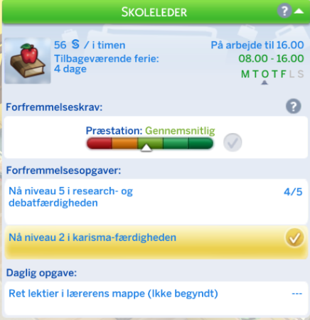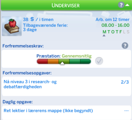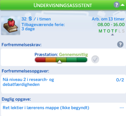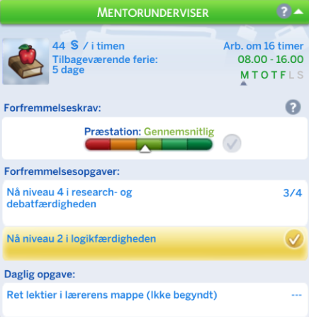 Din simmer har mulighed for at vælge retning inden for Undervisnings karrieren. Dette sker når din simmer kommer til niveau 6.