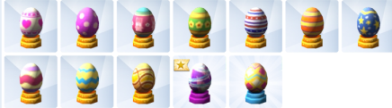 Endelig er æggejagten gået igang igen, så din simmer kan nu finde hele 12 forskellige Malet æg, rundt omkring i nabolaget.
