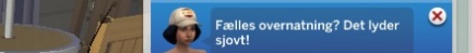 Når din simmer har mulighed for at " Invitér til at overnatte ", bliver det muligt at spørge den valgte simmer om at have " Juhuu " og " Prøv at få barn ".