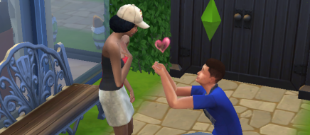 For at blive forlovet, skal din simmer have sig et romantisk forhold til en simmer. Flirt, kys og hold i hånd m.m. så valg mulighederne dukker op i Lage-kage-menu'en. Fri til...