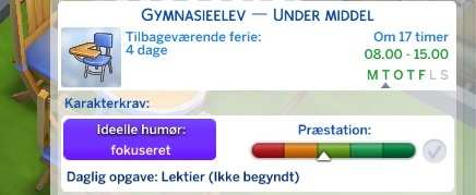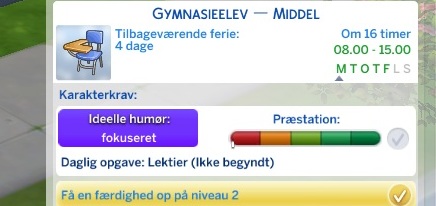 Din simmer skal have, Over middel eller Top karektére for at denne mulighed dukker op.