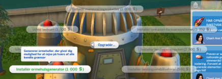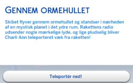 Opgradér derefter " Installér ormehulsgenerator 1000§ ), og din simmer kan nu rejs gennem ormehullet...