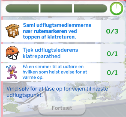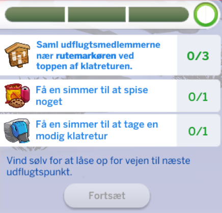 Når alle i din udflugt er kommet op ad klatrevæggen og har "Saml alle nær rutemakøren ". Vil din udflugt have mulighed for at komme videre til næste etape.