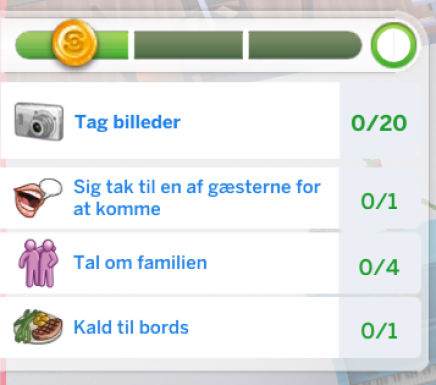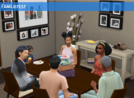 Din simmer vil gerne holde en familiefest, hvor de kan hygge og tale med familien og gamle dage og spise noget mad og spille spil.