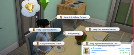 Din simmer for muligheden for at vælge retningen inden for Politik karrieren. Dette sker når din simmer kommer til niveau 6.