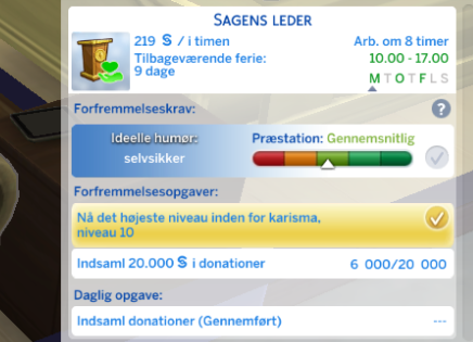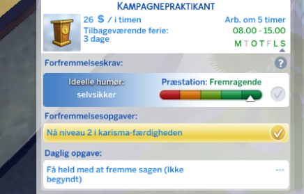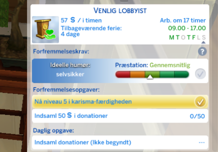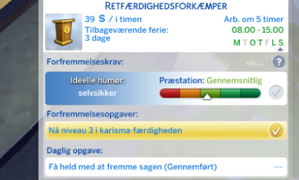 Selvom at din simmer har nået toppen af sin karriere, kan din simmer ikke slappe af endnu. Din simmer skal stadigvæk møde til tiden og gøre en god præstation på jobbet, ellers kan din simmer risikere at blive degraderet og miste alt sit hårde arbejde.