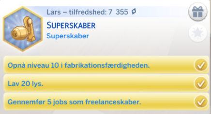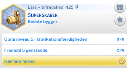 Din simmer har fuldført en Stræben! Din simmer kan nu kalde sig for den store fremstiller!