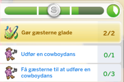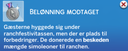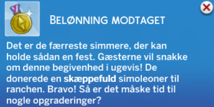Din simmer holdte en dejlig fest og alle gæster var glade. Din simmer modtog simoleoner af dine gæster, så kan du måske holde en kæmpe fest næste gang.