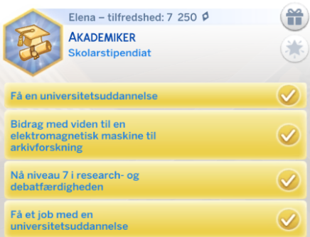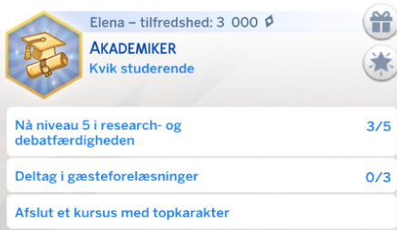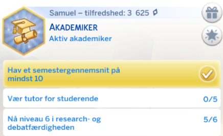 Din simmer har fuldført en Stræben! Din simmer er den fødte ambitiøse på uni og kan nu kalde sig for; Akademiker.