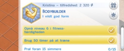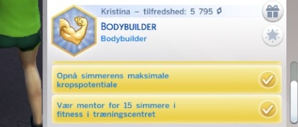- Din simmer har fuldført en Stræben! Din simmer er nu blevet en ægte Bodybuilder.