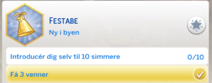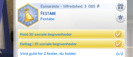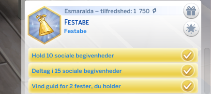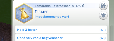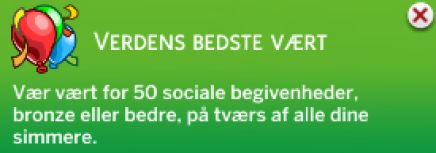 - Din simmer har fuldført en Stræben! Din simmer kan bare det med selvskaber, din simmer modtager en ny Egenskab; Den perfekte vært.